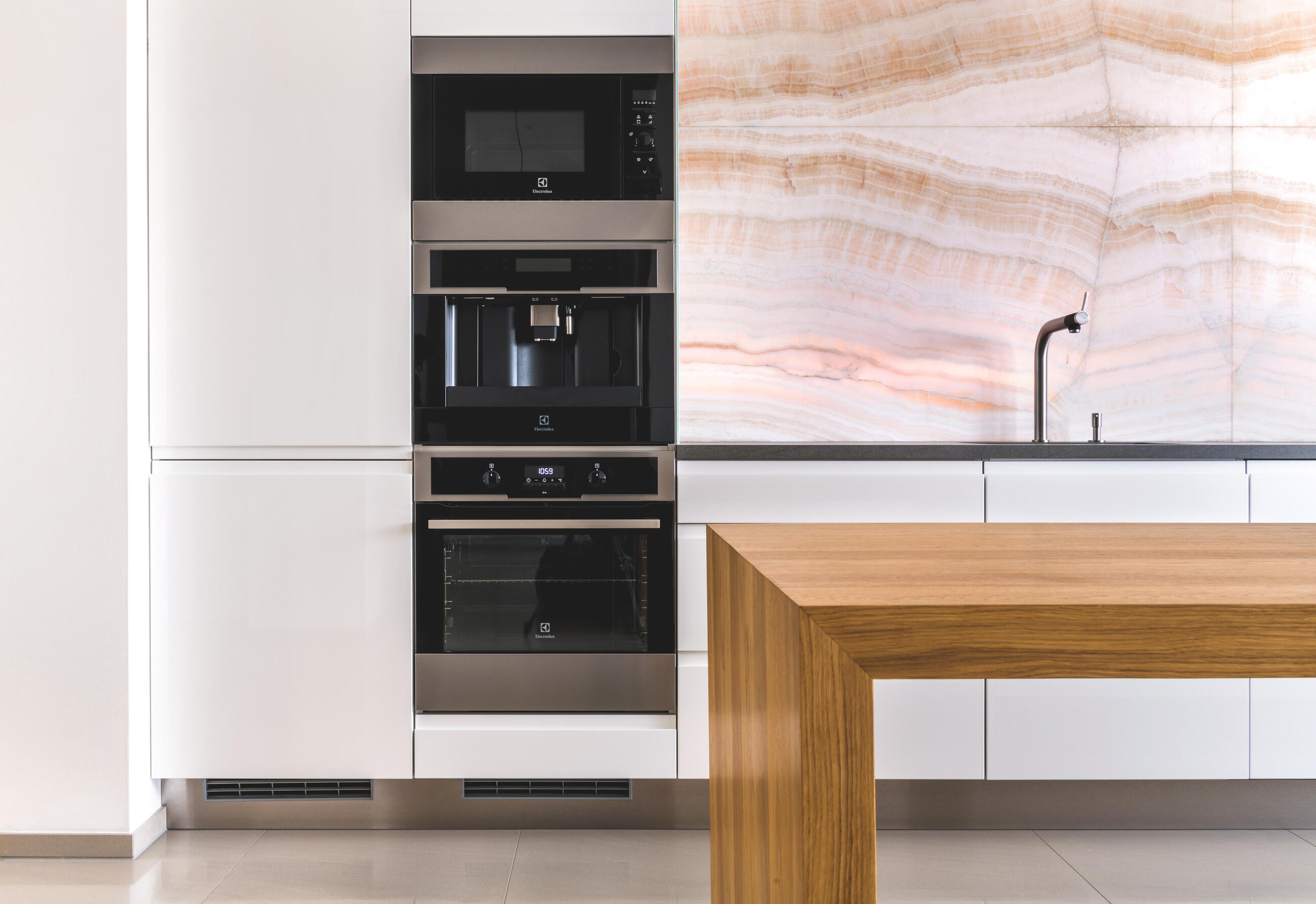 A kevesebb néha több. A Pure White Gloss konyhába nem kellenek túldíszített részletek, sőt még polcok sem ahhoz, hogy magával ragadja, bűvöletbe ejtse az embert. Az aprólékosan végiggondolt dizájnelemek tiszta karizmát sugárzó egésszé állnak össze, amely megragad és nem ereszt. A mosogatóközpont feletti ónixfal a tulajdonosok életstílusának tükre: a látvány lenyűgöző, a tartalom utánozhatatlan. A beépített mennyezeti páraelszívó LED-világítása varázslatos fényt sugároz a térbe.